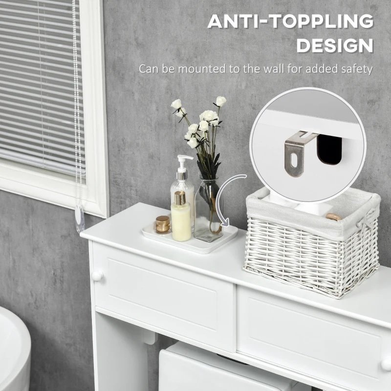 Stable Material: Constructed of quality MDF with metal hinges so the over toilet shelf remains durable and easy to maintain. The anti-tipping design can be fixed to the wall for added stability