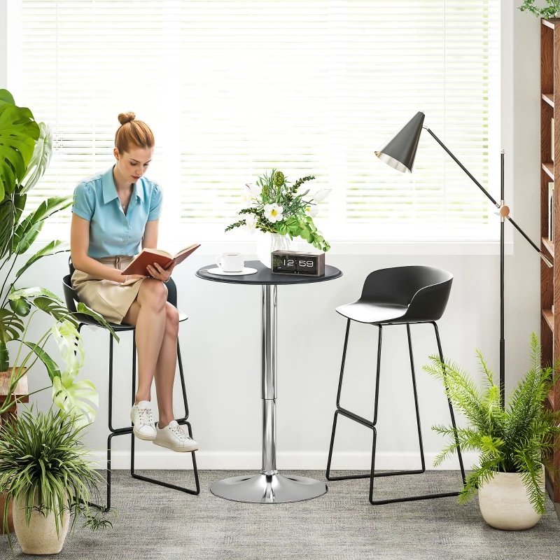 Modern Bistro Table: This round bar table resembles a classic tall pub table however it is updated to better fit into the modern kitchen, bar, or patio setting. Made with a convenient height adjustment option and water-resistant materials.