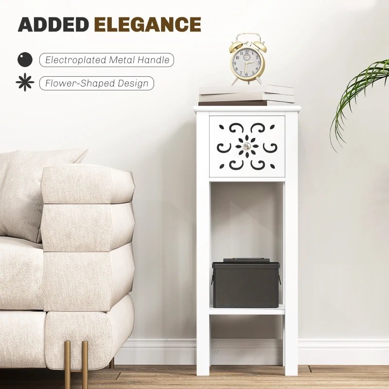 Versatile Charm: Equipped with a sleek metal handle and flower-shaped design, this nightstand set enhances any room as a side table or small coffee table, adding a touch of elegance