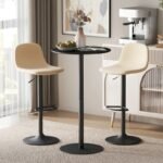 Great for Your Space: This round table comfortably seats two and pairs well with bar stools ranging from 24″ to 27.2″ in height, making it an excellent choice for cozy meals or casual conversations with a friend