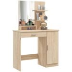Spacious storage: This dressing table comes with a door cabinet, a handy drawer, three open storage shelves and an open compartment for keeping valuable makeup and jewellery pieces out of sight and organised