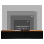 Floating TV Shelf Specifications: Overall Dimensions: 63″W x 13.8″D x 11.8″H (160 x 35 x 30 cm), Weight Capacity: Tabletop: 66 lbs. (30 kg), Each Cabinet: 22 lbs. (10 kg), Compatibility: Fits a wall-mounted TV smaller than 70″ (NOT made to support a TV).
