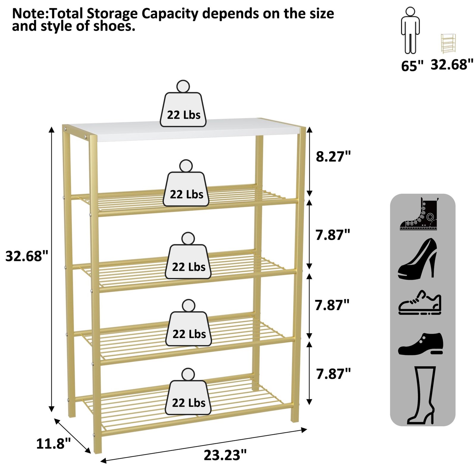 - 【 Ideal for Narrow Space】The great dimension of 23.23”W x 11.8” D x32.67” H makes this shoe shelf an ideal storage solution for your kitchen door, hallway, entryway, closet, dormitory, garage, etc.