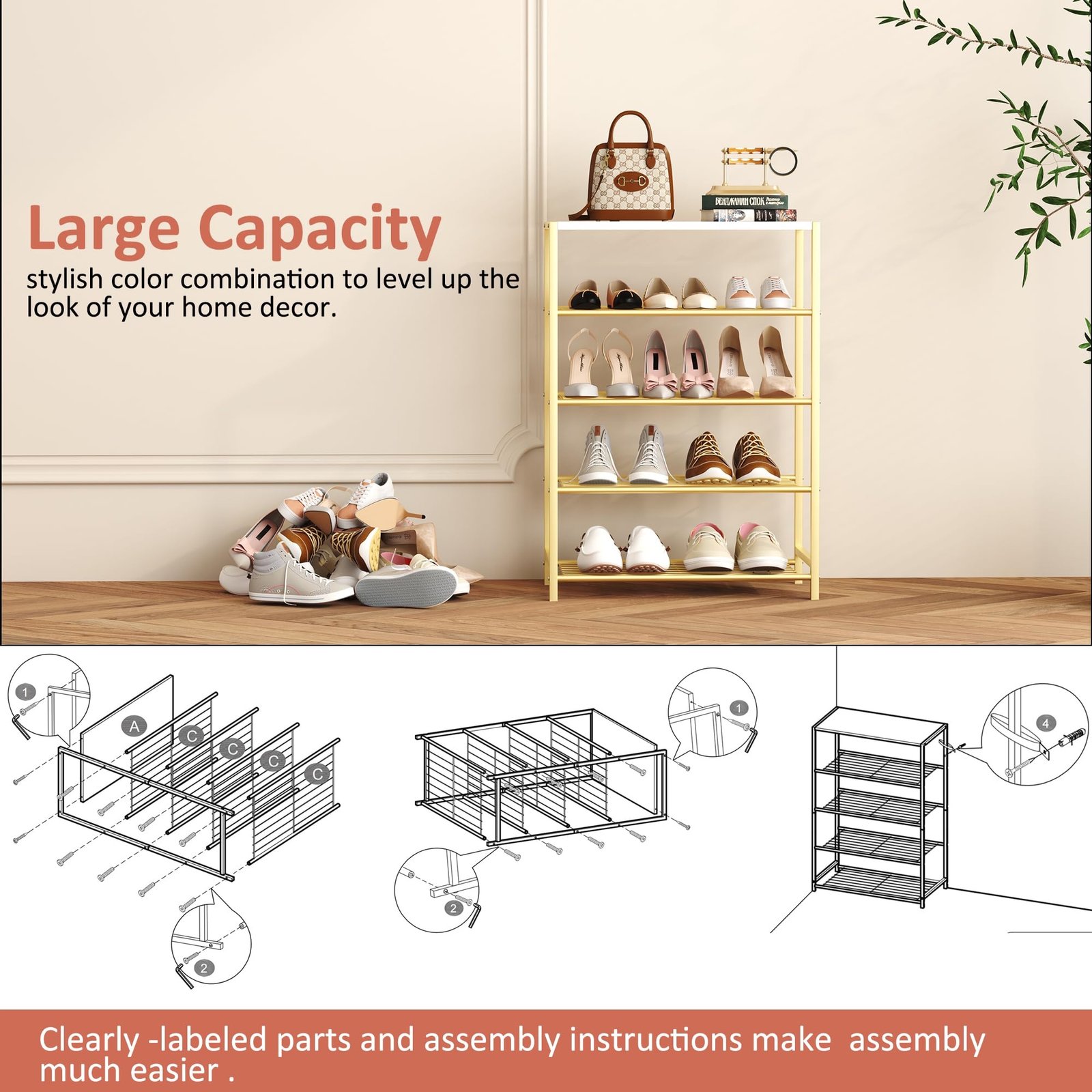 - 【Easy and Quick to Assemble】With clearly labeled assembly parts and well-illustrated instructions, this shoe rack is quick to assemble.
