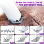 [5 Comfortable Guard Combs]The dog hair clipper with 5 guidance combs provided (3mm/6mm/12mm/18mm/24mm) is applicable for shaving pet hair of different lengths. Upgraded stainless steel blade is safe enough for you to style your pet’s hair at home. Detachable blades and guide combs are easy to change and clean.