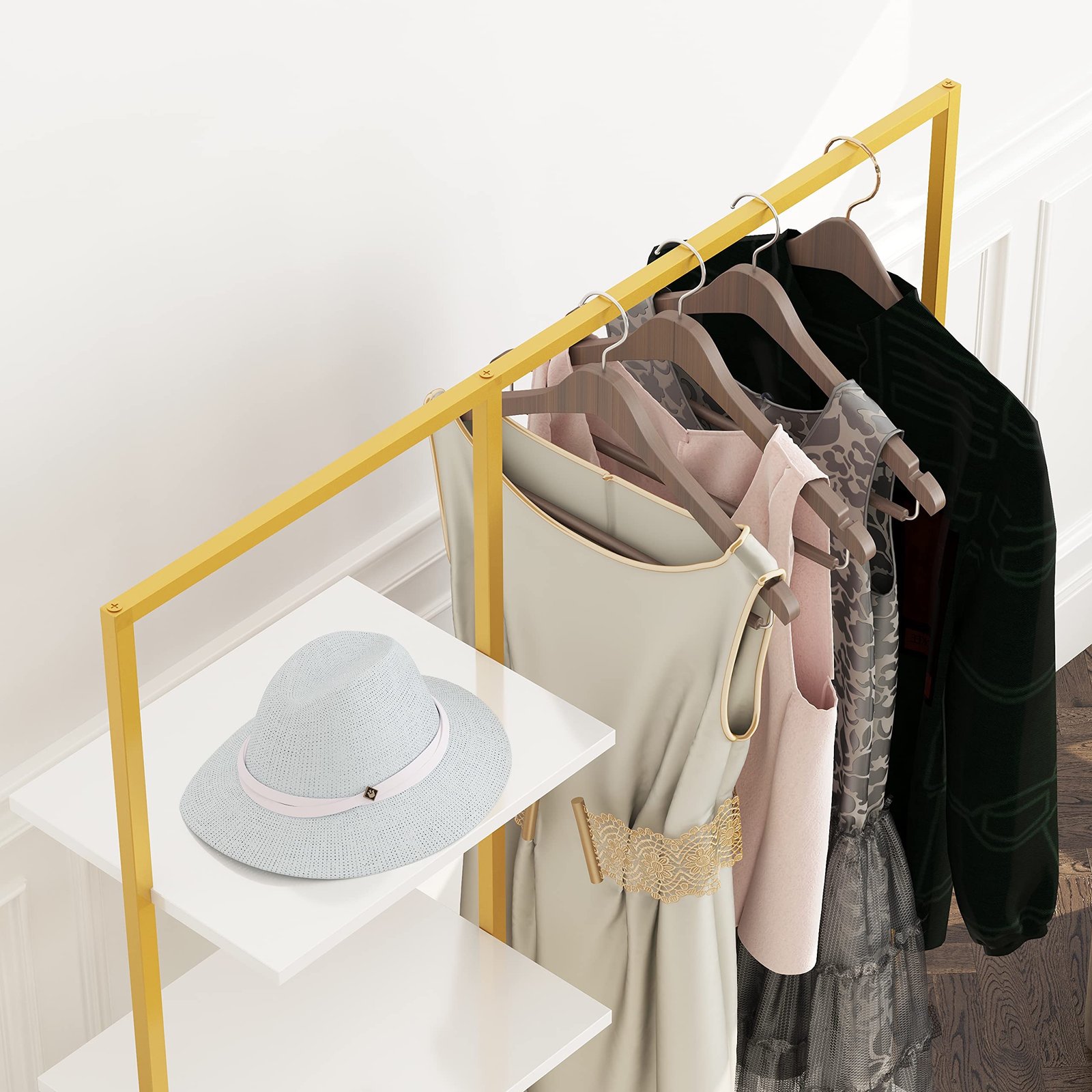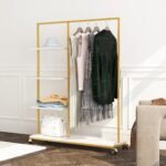 HOMEKAYT Modern Garment Rack on Wheels Gold Clothing Rack