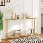 Setup is a Breeze: Easy-to-understand instructions and simple gold console table allow you to easily assemble in 10 minutes; You will fall in love with this assembly process and indulge in the fact that you are an expert at home improvement