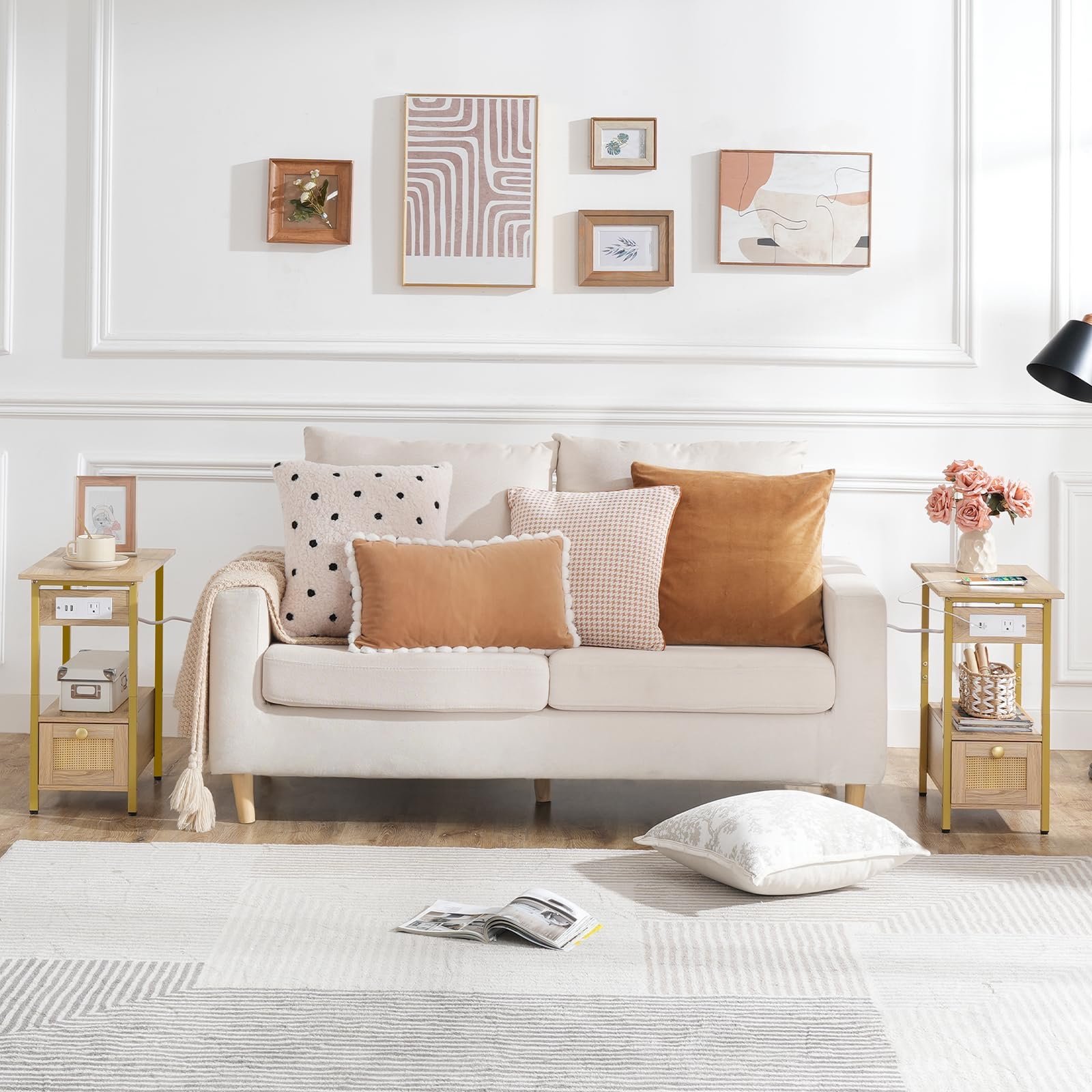 Side Table with Socket: This side table with a socket including 2 USB ports, 1 outlet and a 12.5 cm power cord can be a right-hand helper to charge multiple electronic devices at the same time.The power source within reach makes charging hassle-free