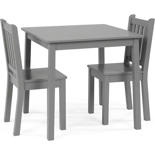 Humble Crew, Grey Kids Wood Table and 2 Chairs Set, Square