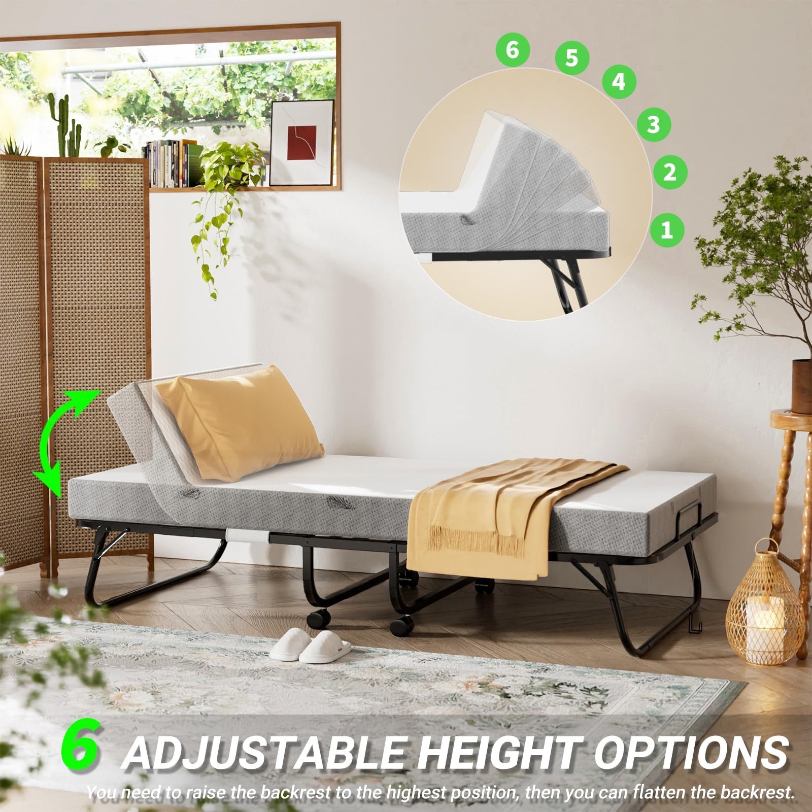 𝗙𝗼𝗹𝗱𝗶𝗻𝗴 𝗕𝗲𝗱 𝘄𝗶𝘁𝗵 𝗔𝗱𝗷𝘂𝘀𝘁𝗮𝗯𝗹𝗲 𝗕𝗮𝗰𝗸𝗿𝗲𝘀𝘁: The adjustable backrest allows you to customize the angle of the bed to suit your comfort preferences, whether you prefer to sit up and watch TV or lay back and relax. This feature also makes the folding bed ideal for individuals who may have mobility issues or need extra support while sitting or lying down.