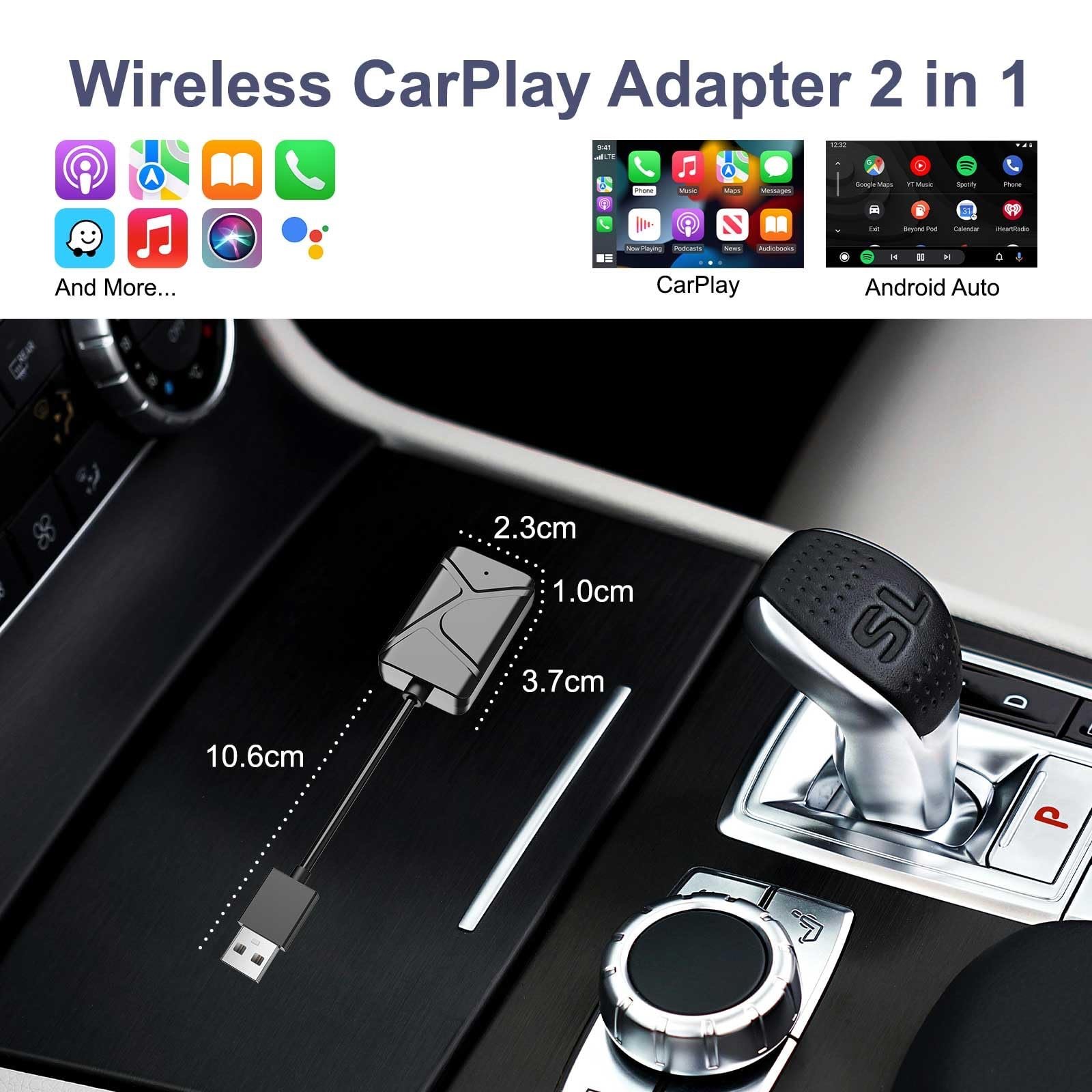 CarPlay Adapter (2025 Upgraded) 2-in-1 CarPlay & Android Auto, Converts Wired to Wireless CarPlay, Plug & Play, Low Latency