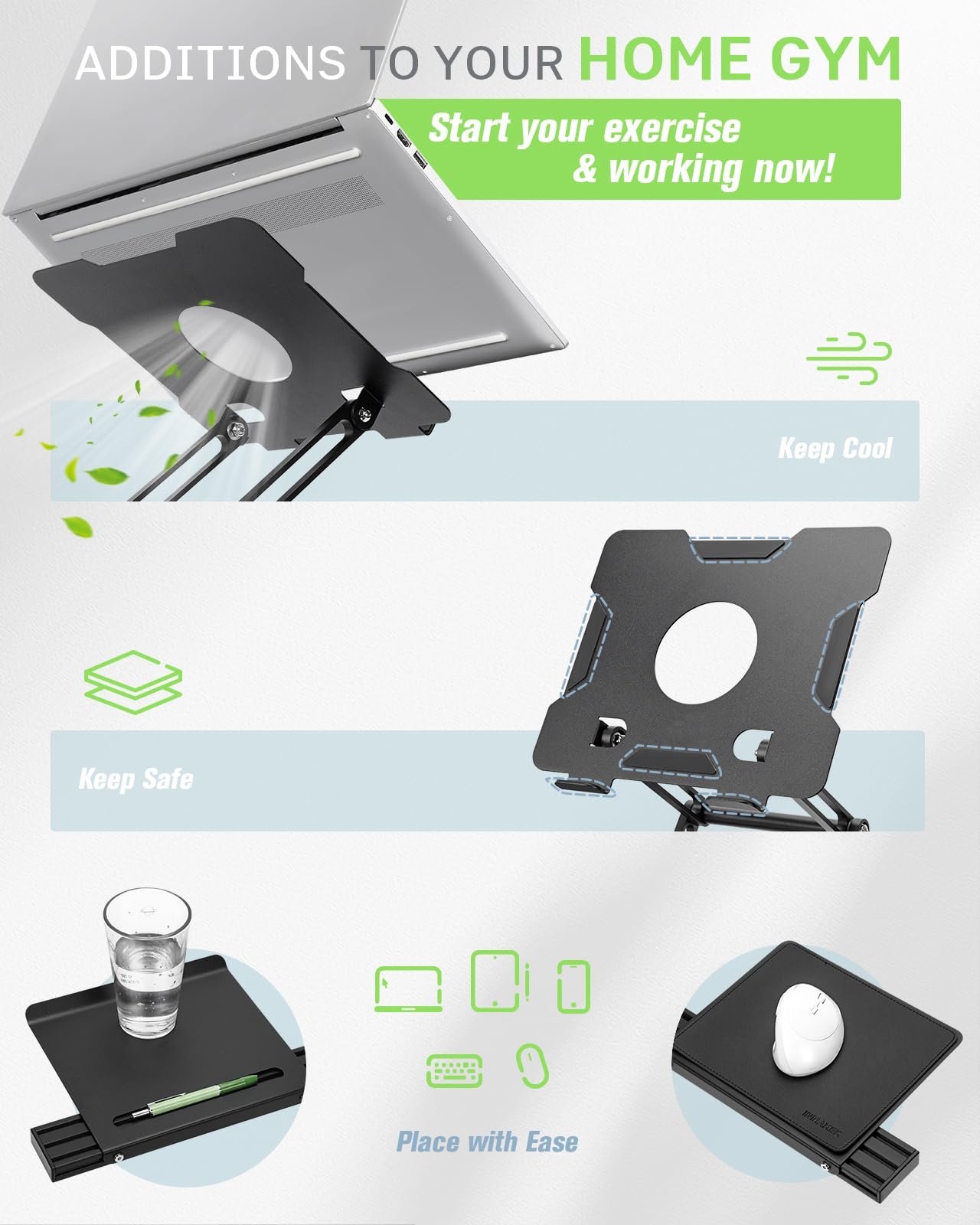 Reliable Home Gym Partner: INMAKER treadmill desk with full metal structure combines quality and texture. Max support to 10 lbs, stable support for most models of laptops and tablets. Helps you to keep up with home exercise routine.