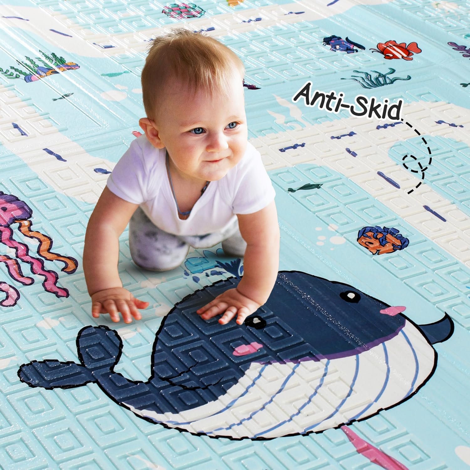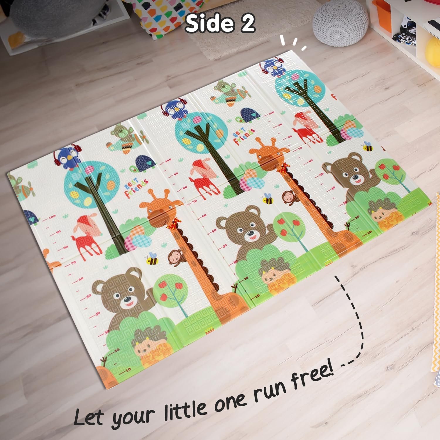 Large & Reversible: Your baby can crawl around on this spacious one-piece play mat, which also helps them achieve developmental milestones confidently without hurting themselves. Also, your baby will enjoy tummy time on both sides with the adorable imagery for added visual stimulation.