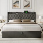 iPormis Full Size Bed Frame with Storage & Charging Station