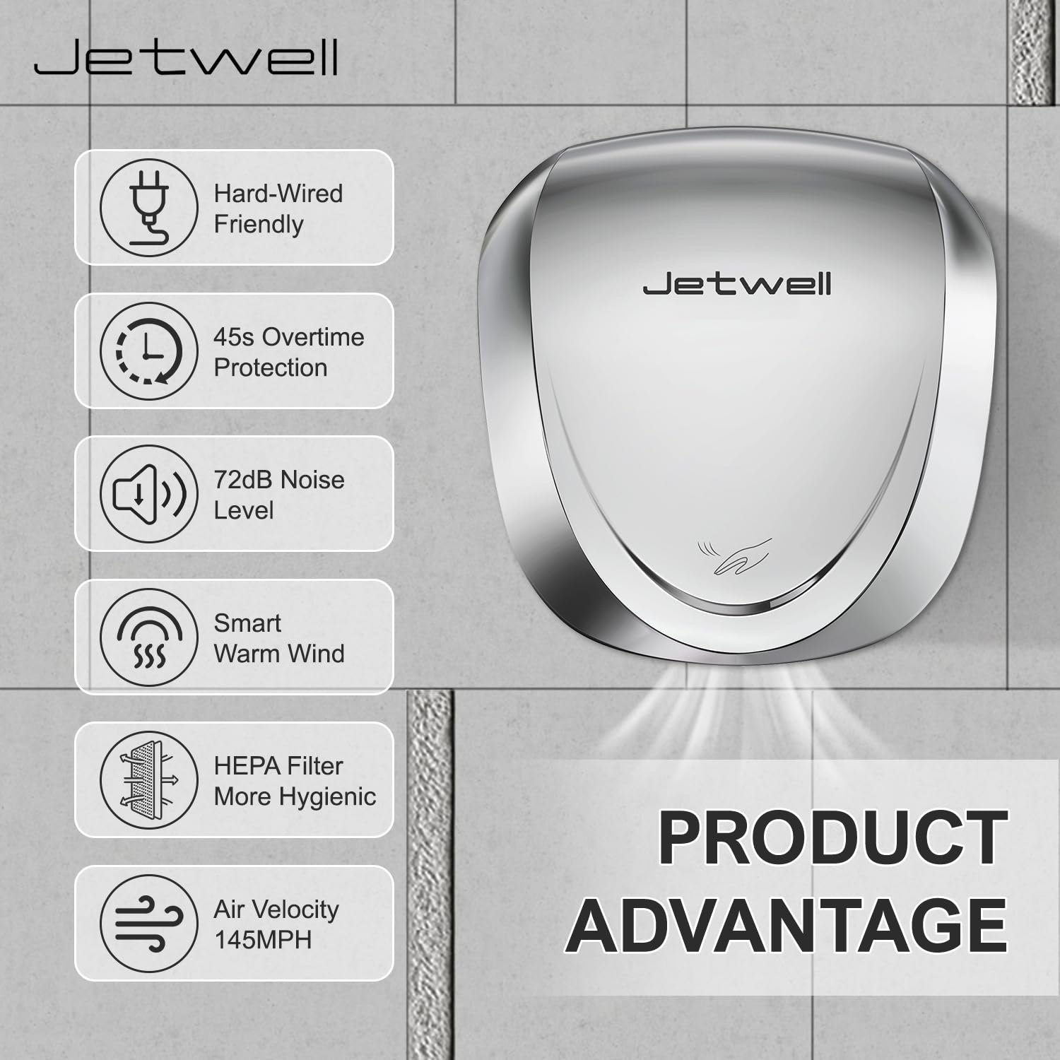JETWELL Commercial Hand Dryer for Bathroom, High Speed