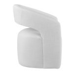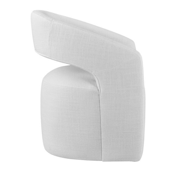 - Soft upholstered seat and curved barrel-style back for comfortable dining
