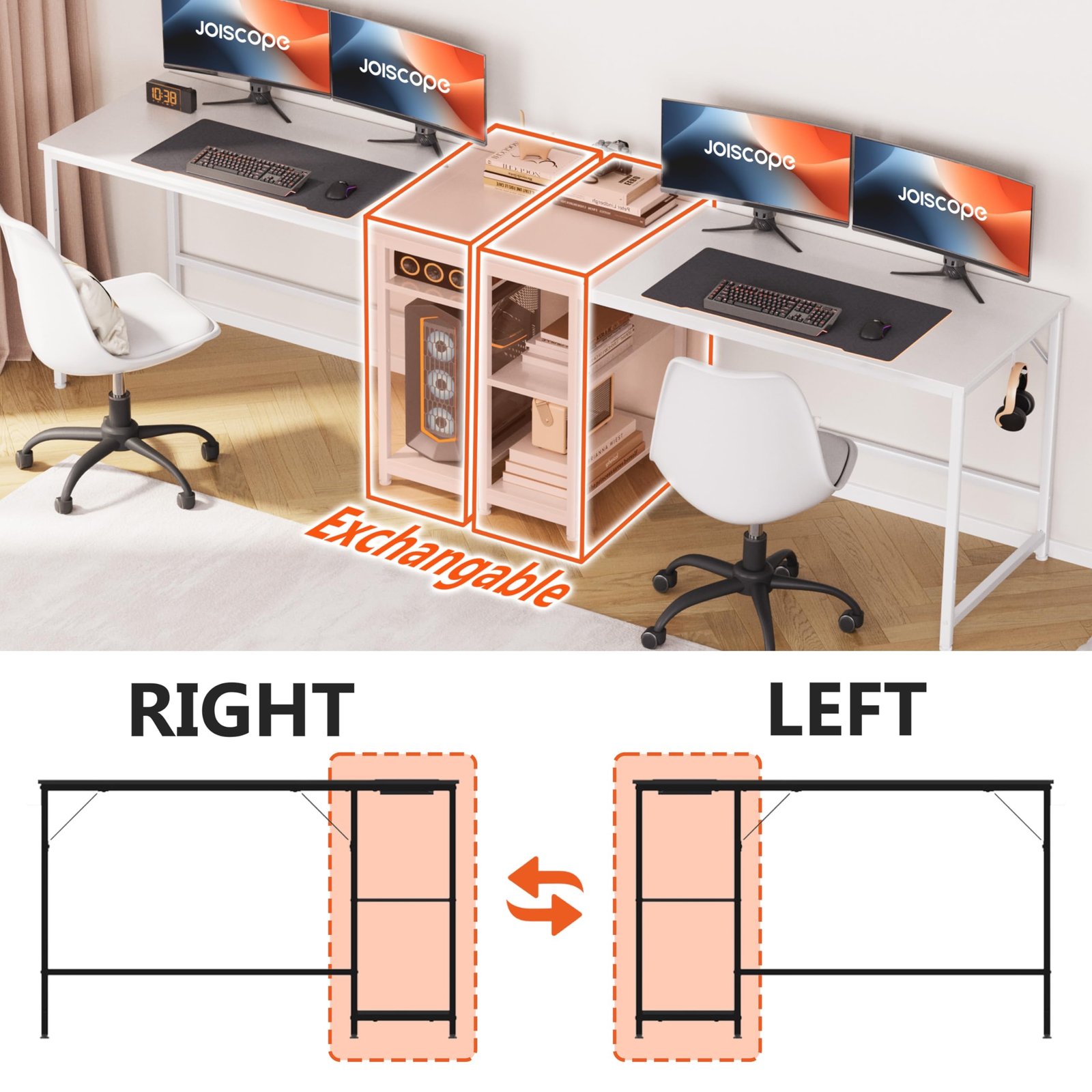 【Easy to Assemble】 Comes with detailed instructions and clear labeling of parts, allowing you to assemble this computer desk with storage easily and quickly. JOISCOPE team is dedicated to providing you with exceptional service.