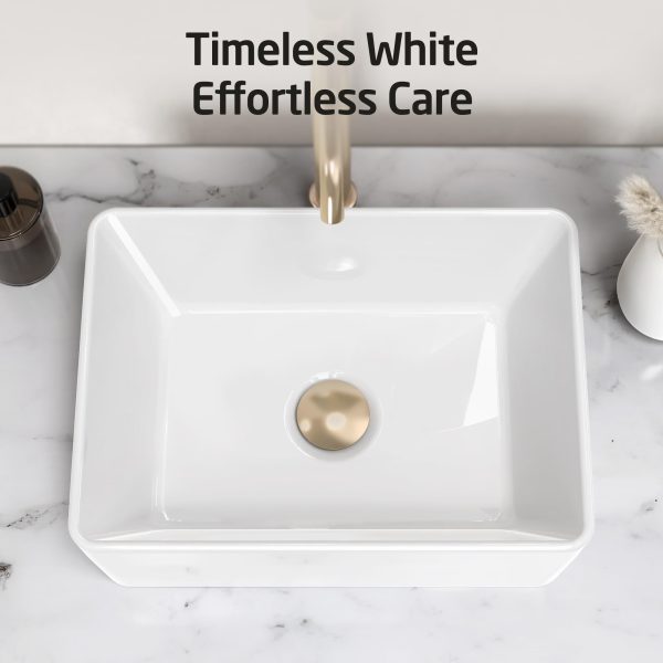 SQUARE VESSEL SINK: 15.75″ (L) x 11.81″ (W) x 5.35″ (H)(400 x 300 x 136 mm). Standard 1.75″ drain opening.With a rectangle and sleek design, this bathroom sink can bring a modern and elegant touch to your bathroom.