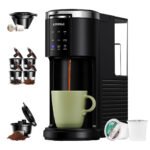 ?3 IN 1 BREWING FUNCTION?This pod coffee maker is equipped with 2 adaptors and reusable capsule, which is compatible with any K cup of normal brand, and also supports brewing your favorite ground coffee or tea.