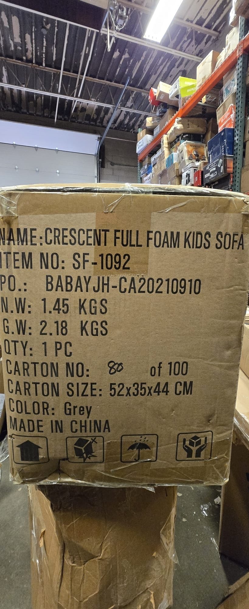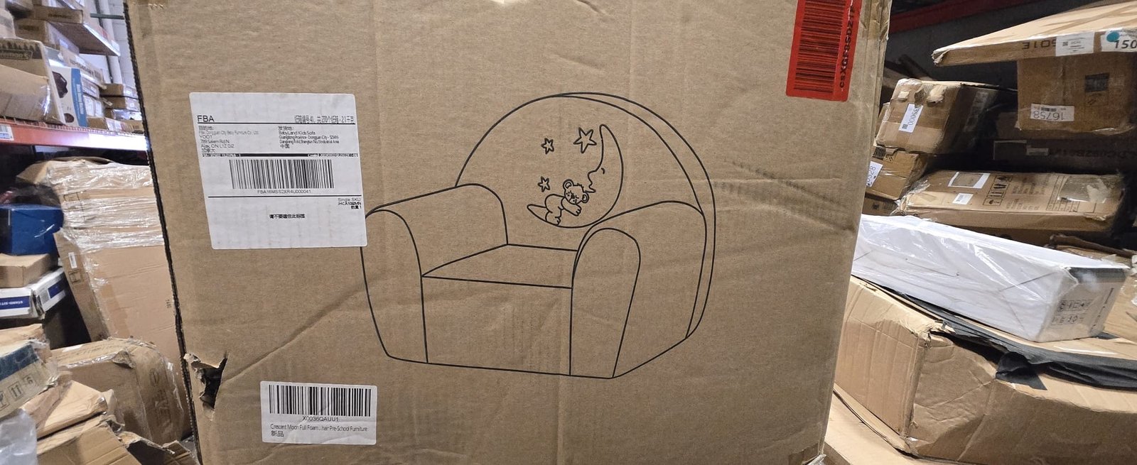 Brand new, never used toddler/preschool foam armchair. Soft blue fabric with an adorable sleeping bear & crescent moon embroidery on the backrest. Full foam construction — no hard edges, totally safe for little ones.