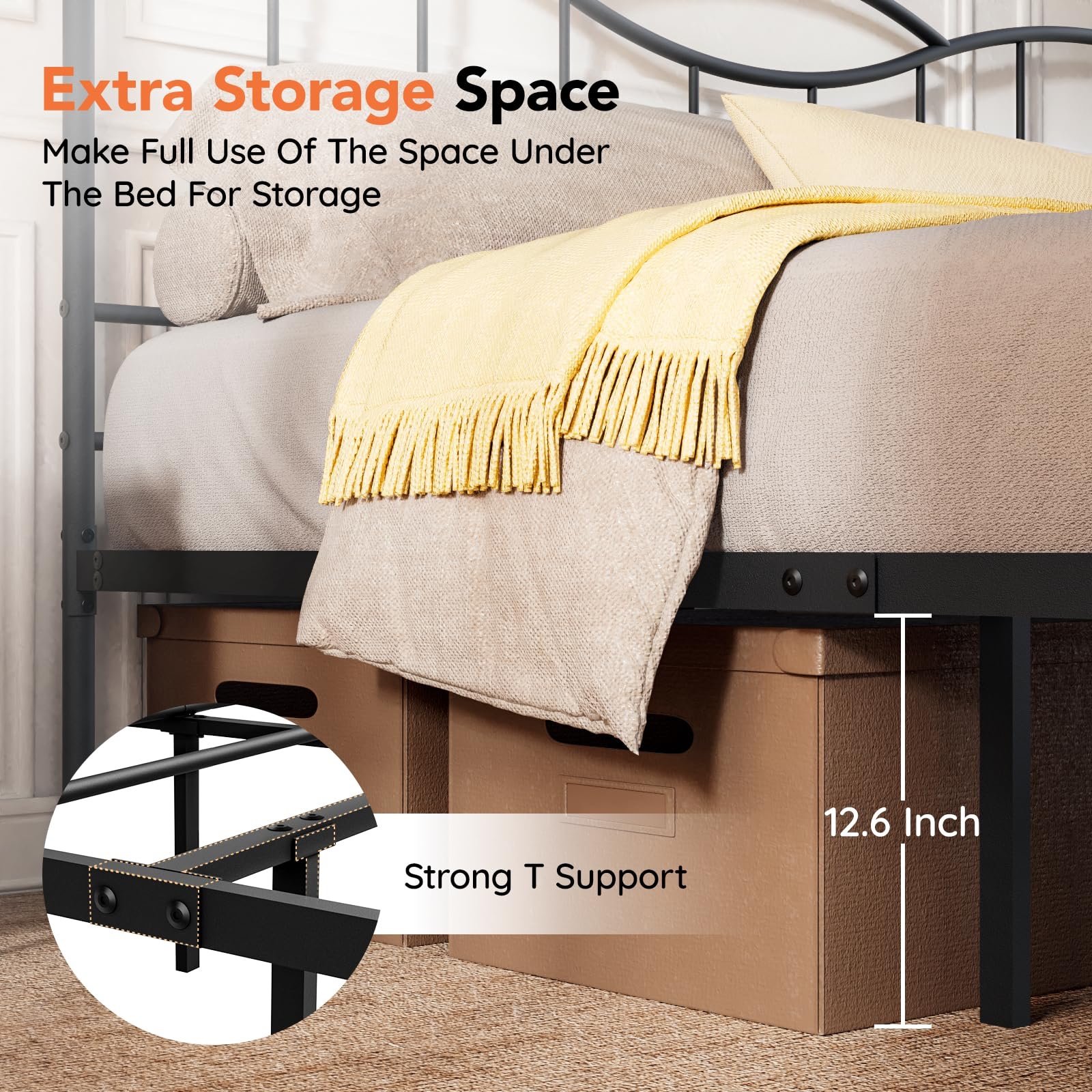 STURDY & DURABLE: Built with a heavy-duty steel frame and reinforced metal slats, this bed frame supports up to 800 lbs, features a rust-resistant powder-coated finish for lasting durability, and requires no box spring—its sturdy construction evenly distributes weight for reliable stability