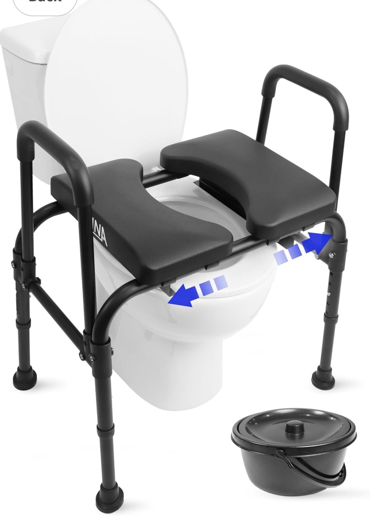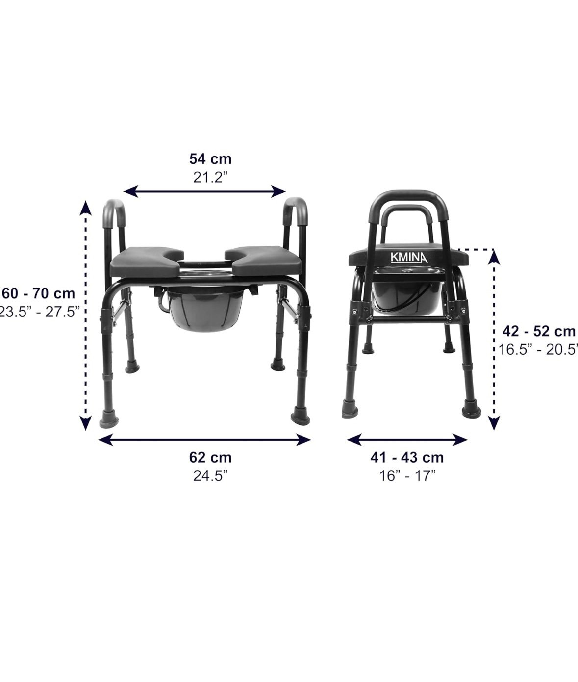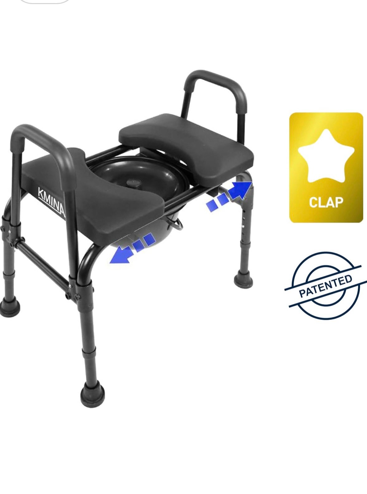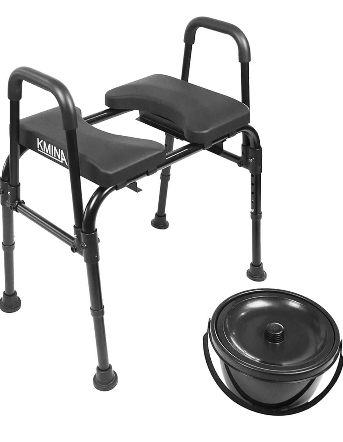COMFORTABLE AND ADJUSTABLE SEAT: Designed for improving comfort, the toilet seat features a wide, high-density PU foam padded seat with adjustable width to fit the user’s body perfectly. In addition, the seat can be folded down for easy access to the bucket.
