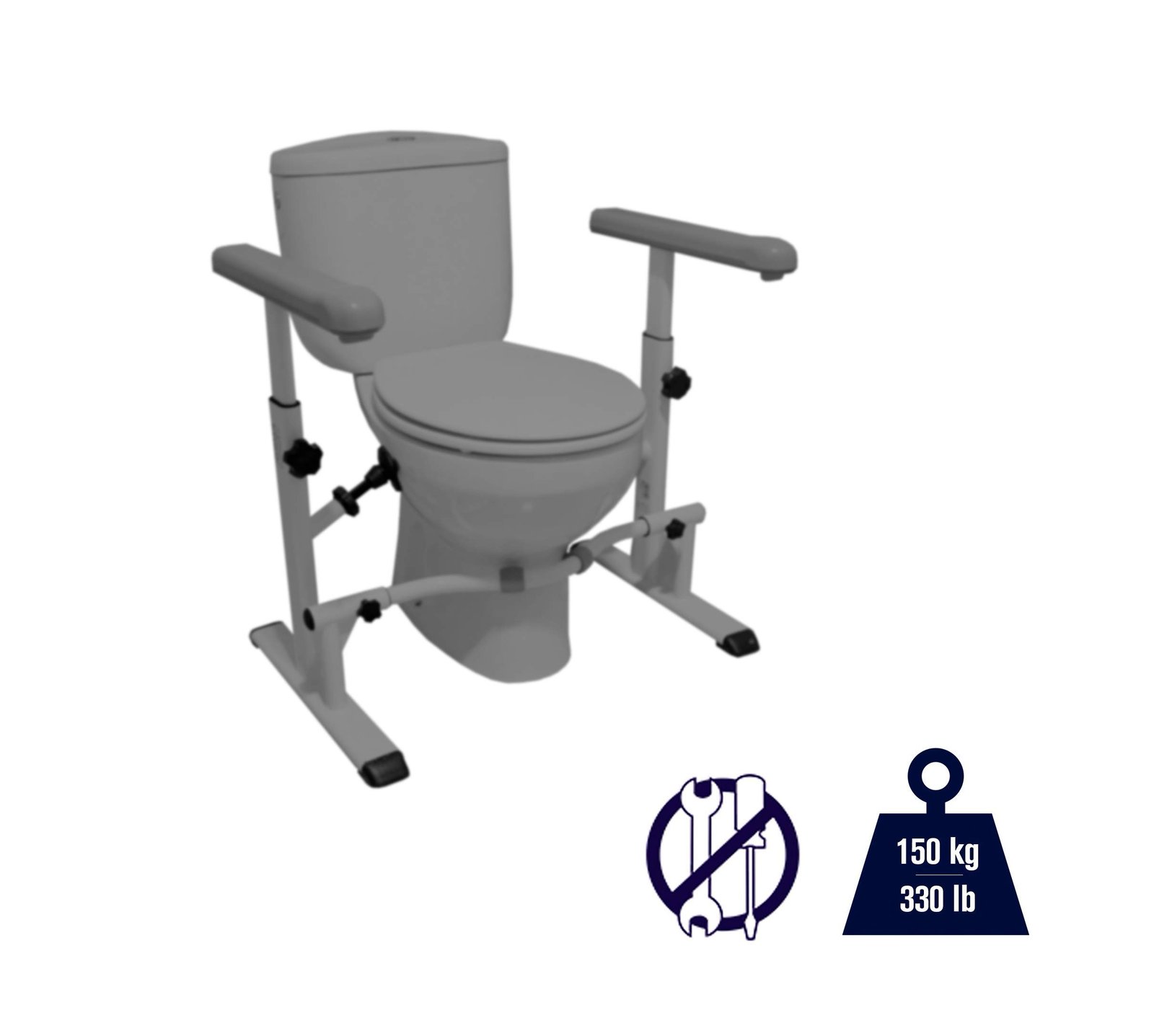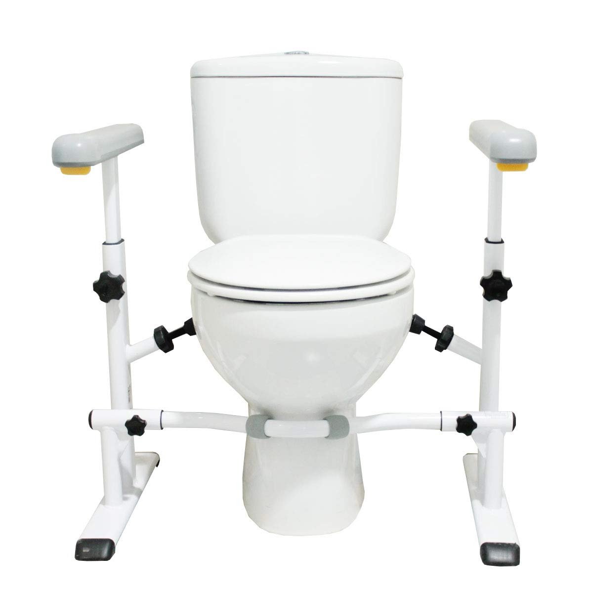ADJUSTABILITY: The toilet frame for elderly can easily be adjusted in height, width and length to be the perfect fit for every toilet. The armrests can be adjusted forwards and backwards for more comfortable support.