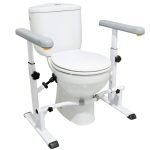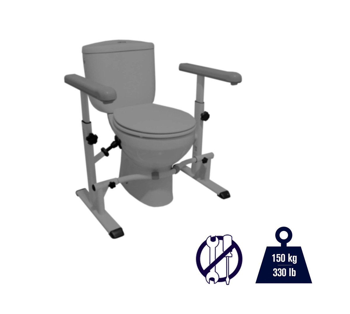 ? ADJUSTABILITY: The toilet frame for elderly can easily be adjusted in height, width and length to be the perfect fit for every toilet. The armrests can be adjusted forwards and backwards for more comfortable support.