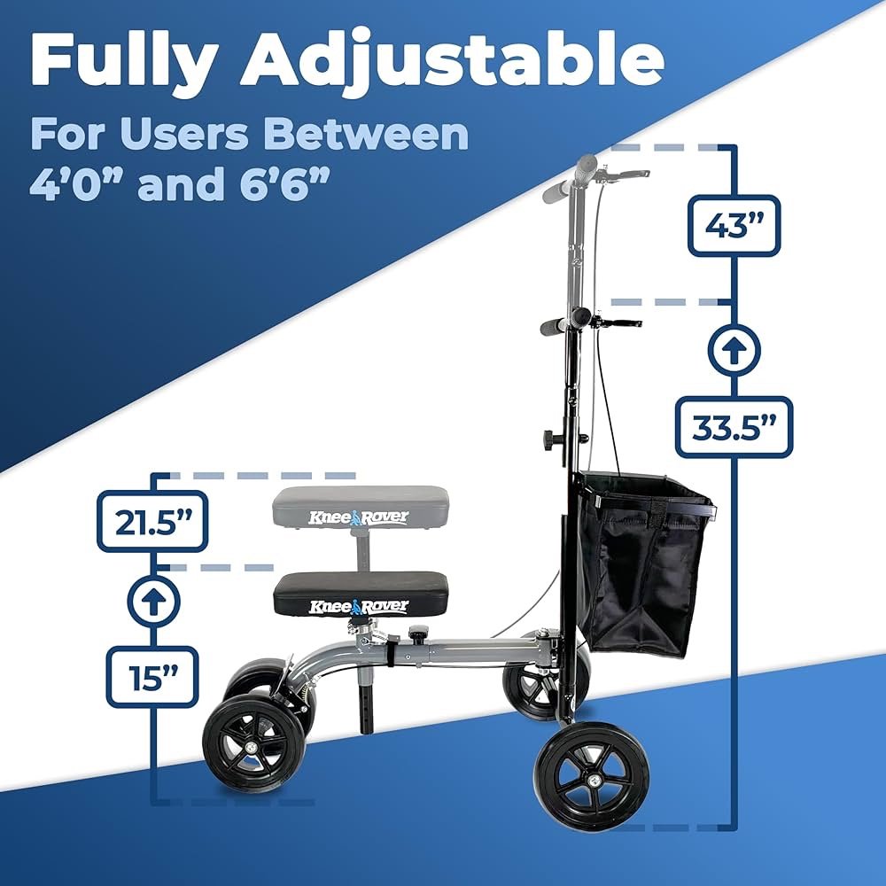 GREAT VALUE: The KneeRover ULTRA includes a convenient basket and is the best knee walker value in the industry from the brand you can trust. This economy knee scooter alternative to crutches is ideal for individuals recovering from a broken foot, broken ankle, broken leg, foot surgery, or ankle surgery.