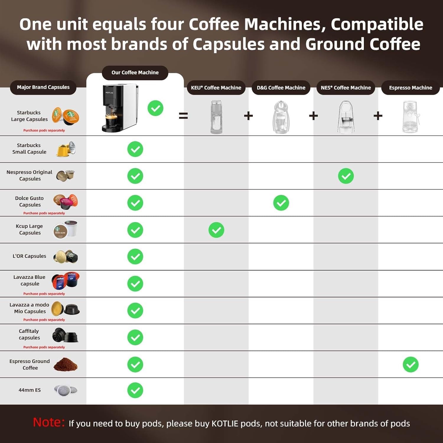 KOTLIE Single Serve Coffee Maker,4in1 Espresso Machines