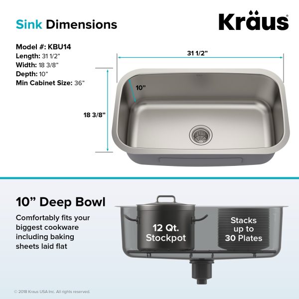 Kraus Undermount Single Bowl 16 Gauge Stainless Steel Kitchen Sink
