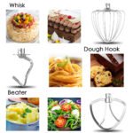 8.5-QUART HIGH CAPACITY – 660W high performance motor, Big stainless steel mixing bowl offers enough capacity. Each Kuccu kitchen stand mixer comes with a dough hook, flat beater, wire whip, and pouring shield avoiding mess kneading process.You can enjoy the fun of making cakes, bread, cookies, pastry, muffins and waffle.