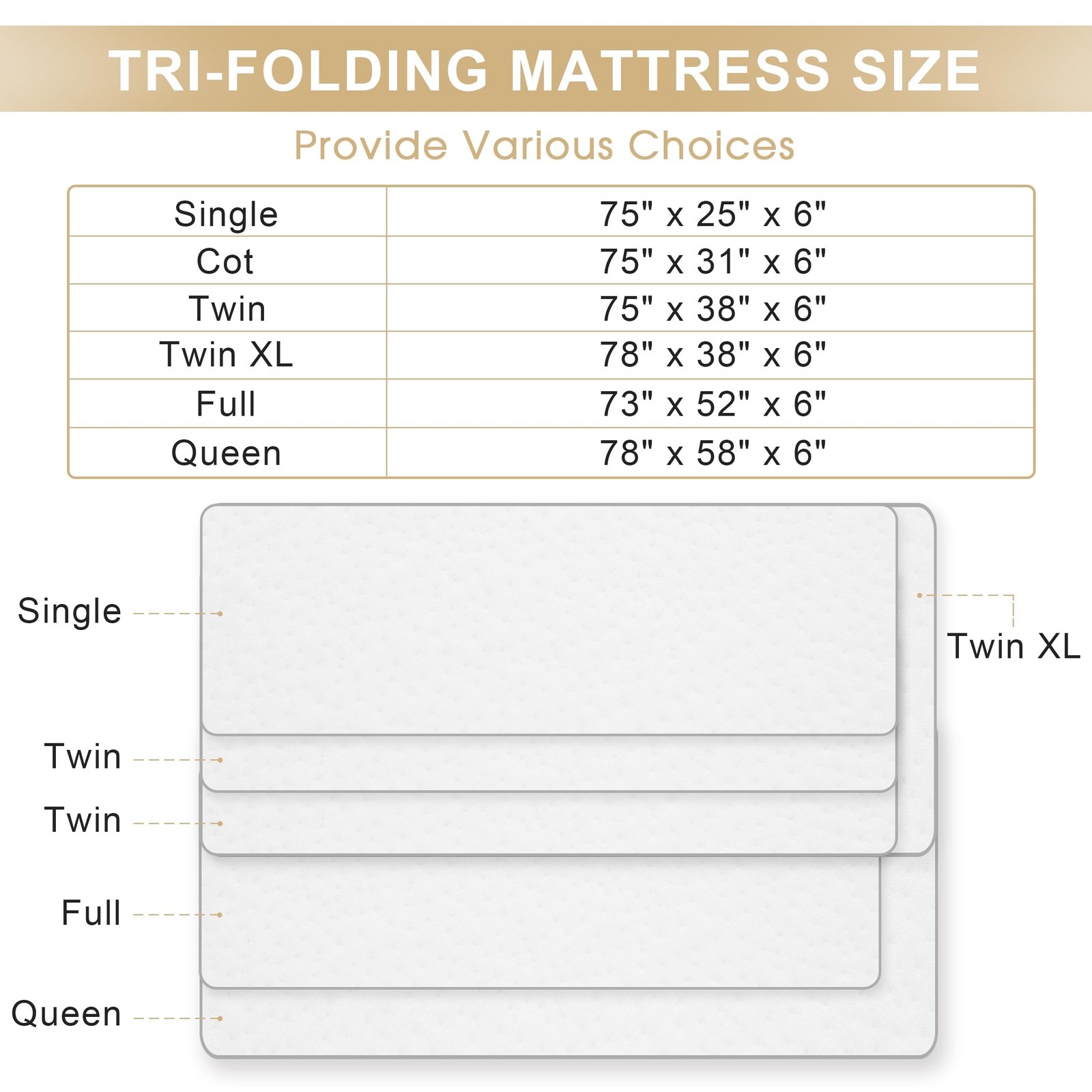 No Risk & Durable: This foldable mattress bed is constructed with CertiPUR-US Certified and OEKO-TEX tested Foam. The floor mattress for adults is made of skin-friendly viscose fiber fabric, The bottom has a water proof cloth to prevent sliding during use. Coming with the smooth zipper, the cover of our trifold mattress can be quickly removed for easy washing.