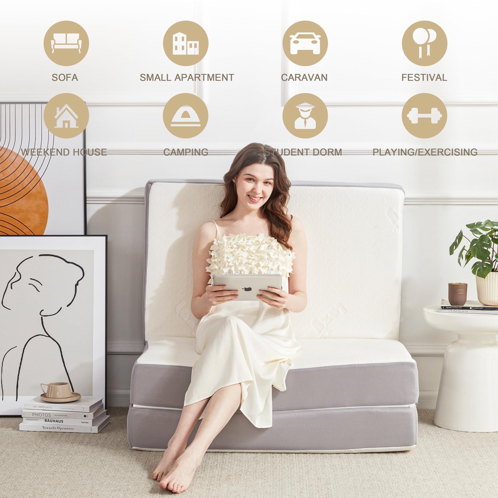 Multifunctional Design: Lazyzizi convertible foldable mattress can be changed among lounge chair and bed to satisfy your different needs. Folding mattress portable makes it perfect for camping, yoga, sofa bed, spare bed, guest bed, dorm room, RV mattresses, and more. It is undoubtedly the ideal solution for small spaces.