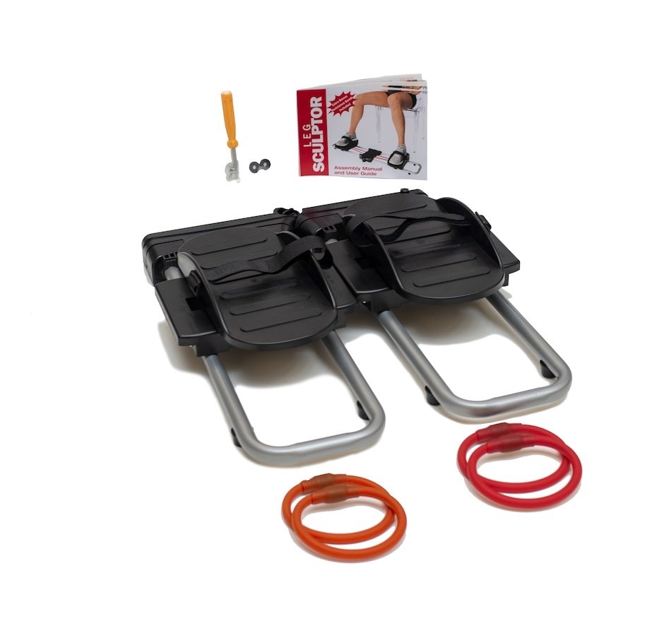 The Leg Sculptor targets the thighs, calves, quads and hamstrings, and features two resistance levels: the yellow band for low resistance (ideal for beginners), and the red band for high resistance. It also has a compact and easy-to-move two-in-one design, allowing you to exercise from side to side or forwards and backwards. Hook-and-loop straps help secure your feet in place.