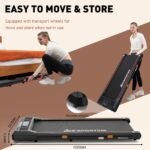 【Easy to Store and Move】With desk treadmill space-saving design, the treadmill is only 126*52.2*12cm in size and can be easily set under your office desk, and stored under a bed or sofa. The built-in wheels make the portable treadmill easy to move around. No damage to the floor during movement.