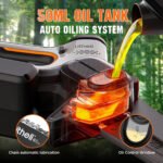 Easy Adjustment: the battery hand chain saw has an automatic lubrication system that automatically regulates oil consumption depending on the thickness of the branch to be cut. The transparent oil tank allows for easy checking and refilling. An adjustment knob on the side of the chainsaw allows tool-free adjustment of the chain tightening and changing the chain.