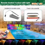 ?Upgrade SMD LED?The upgraded LED light strip(IP68 Waterproof) will be brighter than ordinary. It can be installed in the movable cover or fixed in the waterfall with double-sided tape, which will bring two different lighting effects. It can be changes multi colors via RF remote, includes the function of brightness and speed of modes.