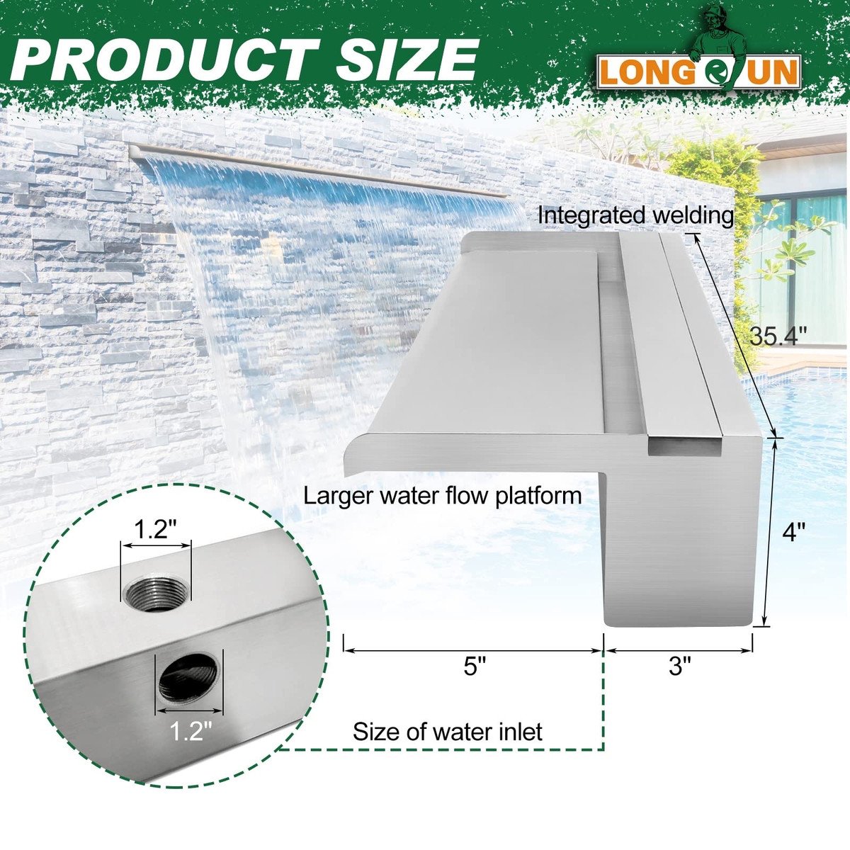 ?Wider Water Flow Platform?Our pool waterfall has an 8″ width integrated welding water platform, 3.94″ high water storage tank platform and 12? tilt angle, which will make the water surface more stable and smooth. You can enjoy the soothing sound and sight of the falling water!