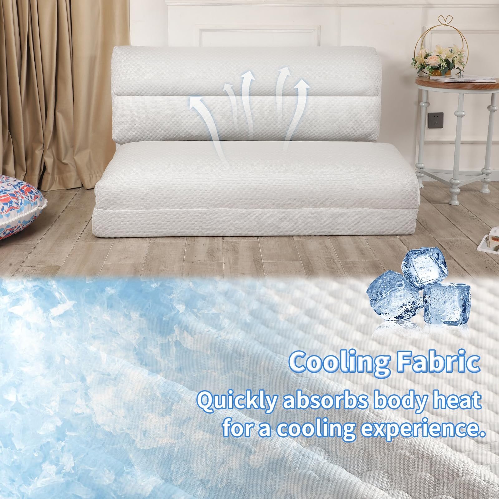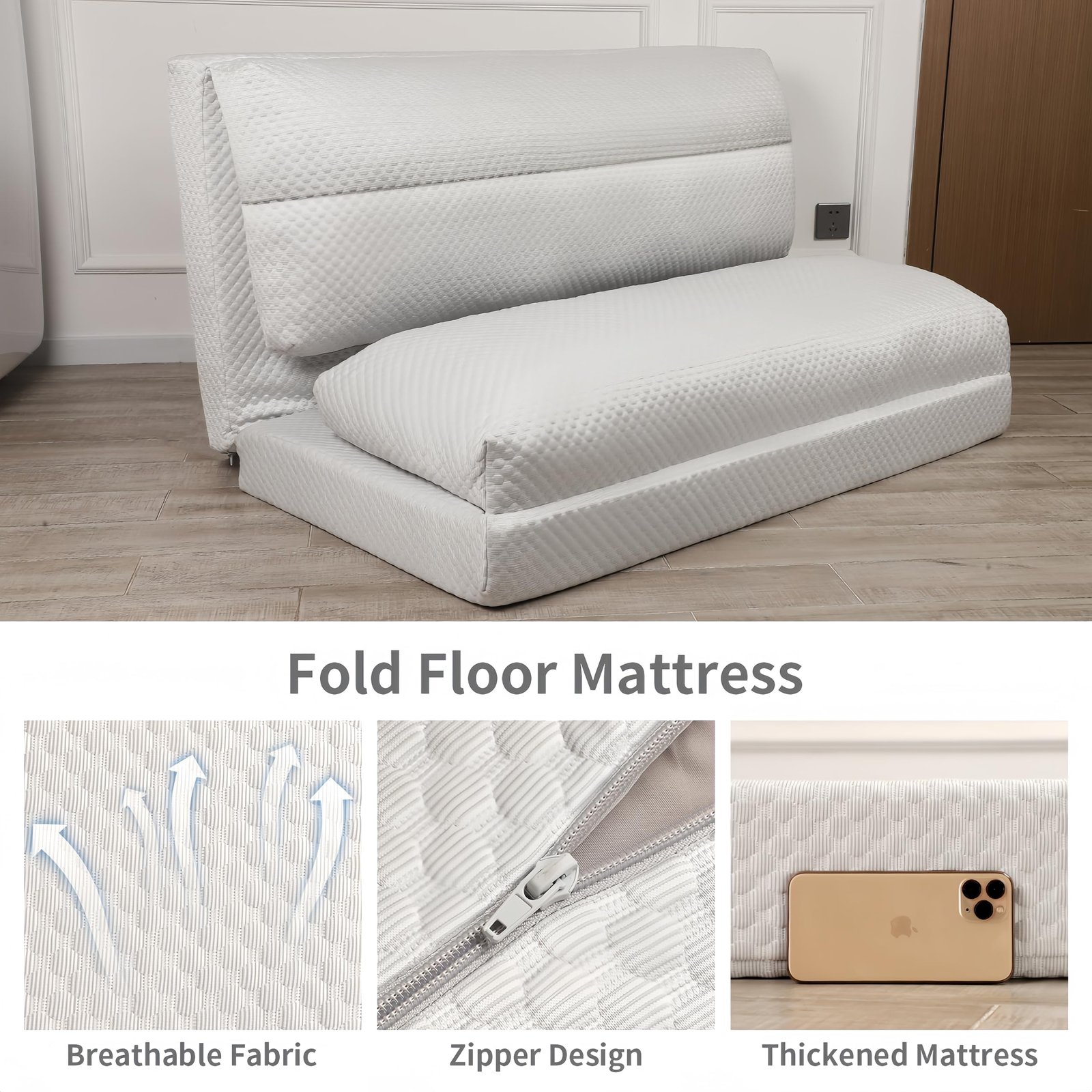Cooling Fabric and Memory Foam: The floor mattress is made of cooling fabric, which is breathable and expertly absorbing body heat. High-density foam inner is comfortable and gives you great support at the same time. You will not feel “sink in” when you use it.