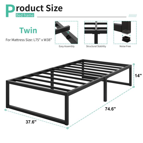 EASY ASSEMBLY: Bed frame parts, required hardware and clear installation instructions are all packed in the box, you can install this twin metal bed frame in 20-30 minutes.