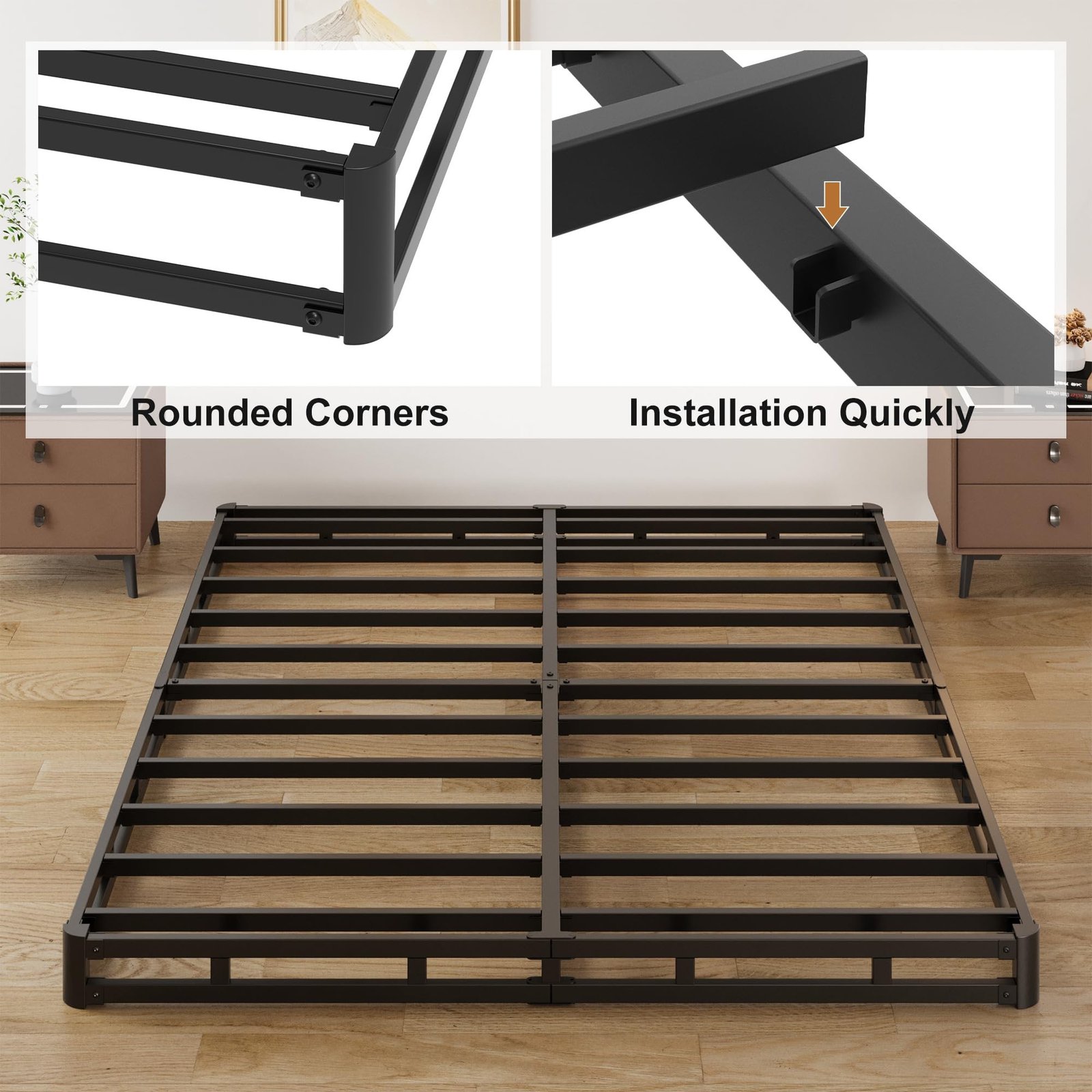 NOISE FREE DESIGN: No squeak low queen box spring provide you a quiet, peaceful and comfortable and sleeping time.