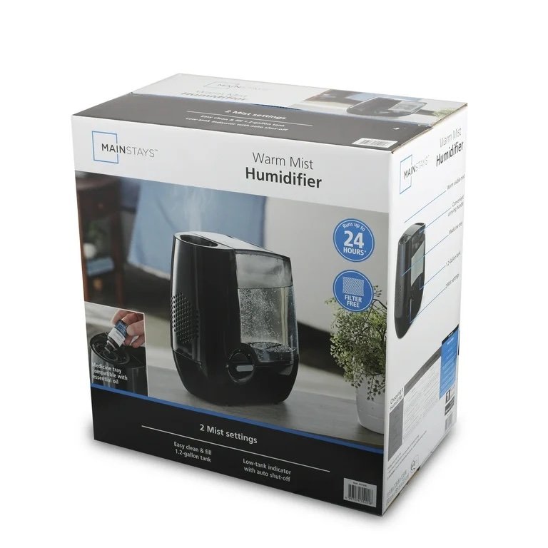 Mainstays 1.2 Gallon Warm Mist Humidifier, HF3102BL