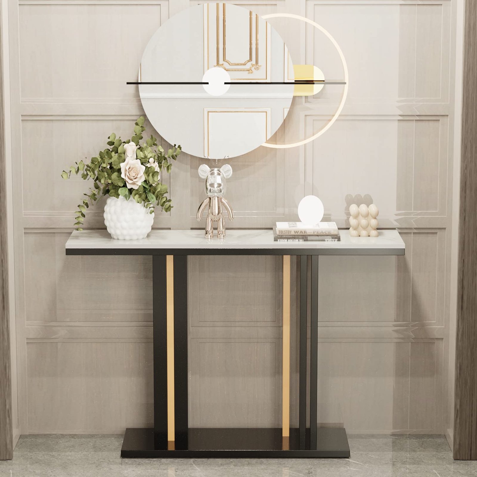 Perfect Size & Easy Assembly – Round curved-edged corners are well polished to prevent bump against injuries,offering smooth touch and a safe experience,Product dimension 46.4×11.8×30.7 inch,All the hardware and instruction are provided,read the steps carefully then assemble the table,hallway console table perfect for anywhere,entryway,corridor,living room,office,couch,The solid sleek marble tabletop serves as a perch for your favorite vases and artworks