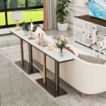 Luxury Console Table – If a Luxury elegant console table for your living room is what you’re looking for,Snow mountain white pattern sintered stone console tables is best choice,with the elegance of marble but a toughness that far outweighs any natural stone,With metal legs in a gold and black color finish, this console table sits on an open geometric frame that’s totally modern,Its tabletop is made from snow mountain white textured sintered stone for a contemporary twist on a luxury look