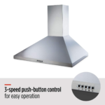 The MASTER Chef Pyramid Range Hood features a powerful 380 CFM blower that operates at 1.5 sones at normal speed for a quieter experience