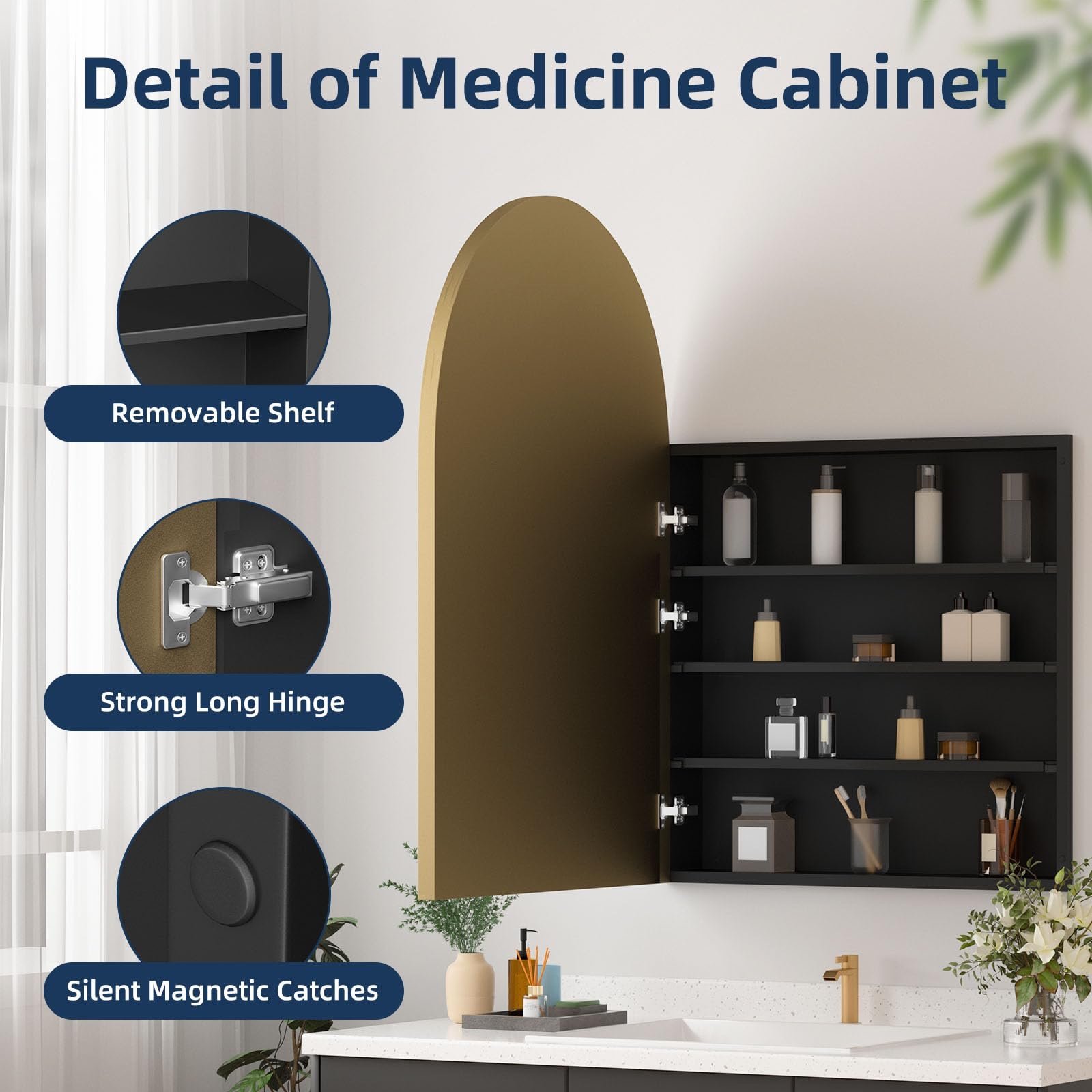 Medicine Cabinets for Bathroom, Gold Arched