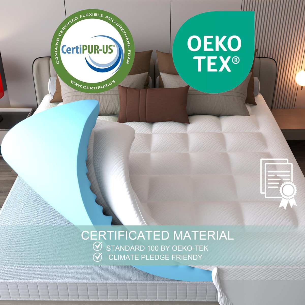 ?Certificated Memory Foam?The memory foam mattress topper is certificated CertiPUR-US and OEKO-TEX 100. Giving you greater peace of mind for better sleep.Show more