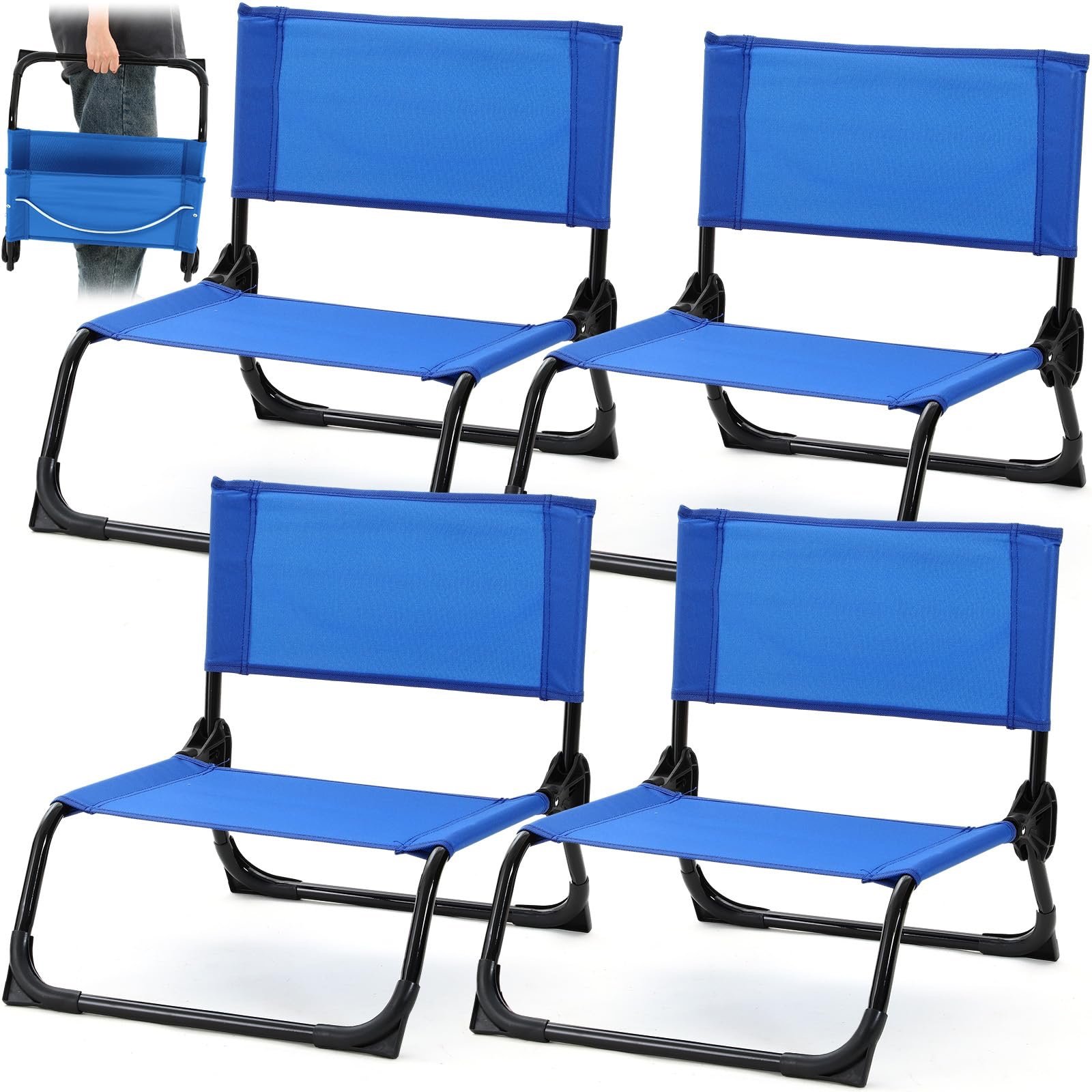 Comfortable Low Seat: this foldable beach chair provides a comfortable backrest, which can reduce the pressure on your back, so you no longer have to worry about it getting stuck in your back; The low profile seat is designed to allow you to sit low to the ground, making it easy to straighten your legs and relax your body completely; Can fit comfortably under typical beach umbrellas and tents to fit in concert venues and feel the sand on your feet at the beach