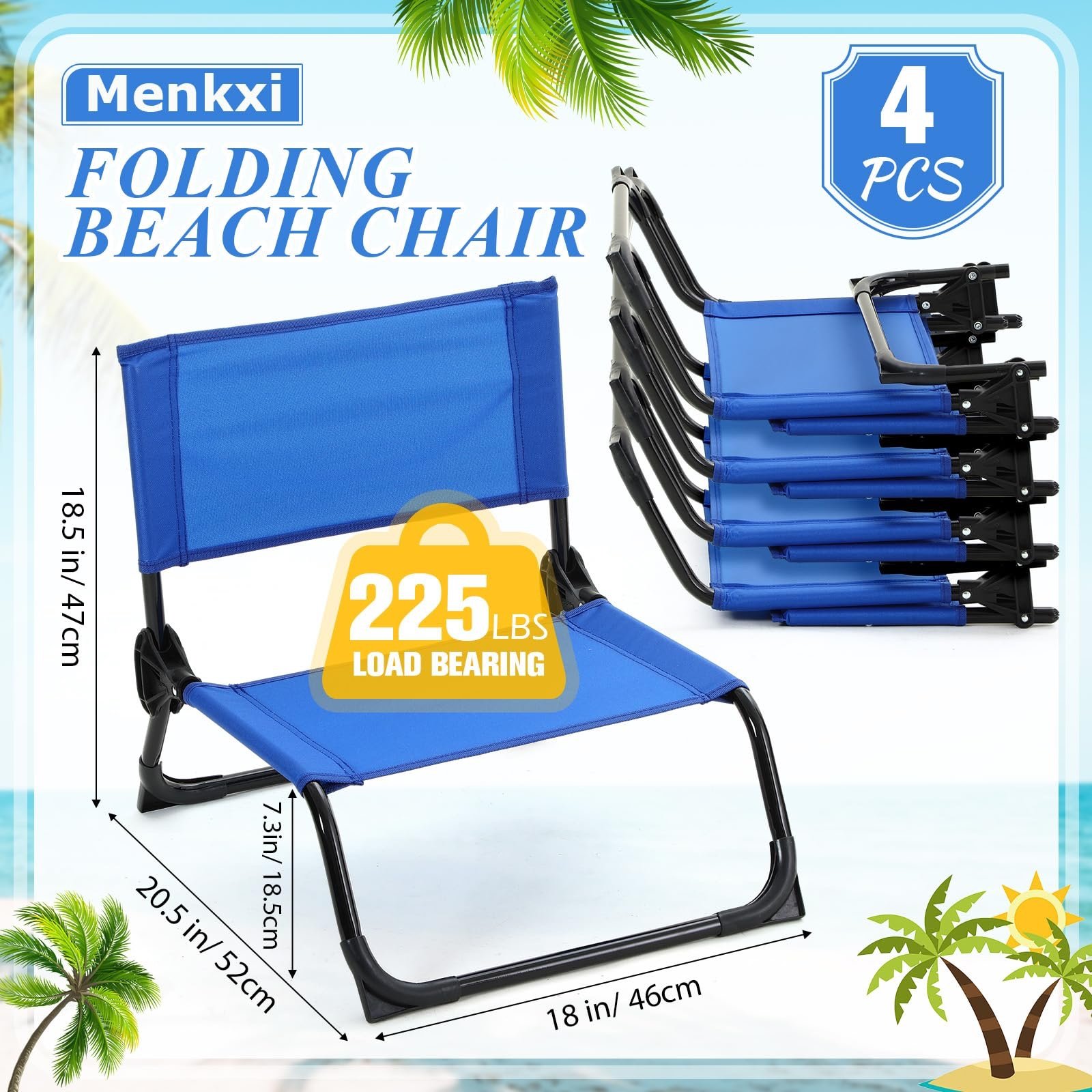 Comfortable Beach Chairs: you will receive 4 pcs outdoor beach chairs with dimensions of about 18 x 20.5 x 18.5 inch (W x D x H) and a weight capacity of 300 lbs; 4 Pack high performance, enough to meet your daily use and replacement needs, you can also share it with others; Suitable for patio barbecues, family outings, camping with friends, beach parties and other occasions